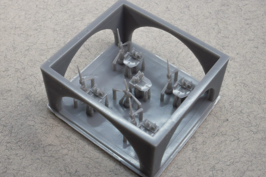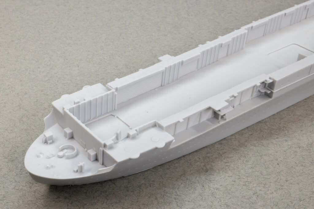 The genesis of the Tom’s Modelworks’ kit of Yorktown is the older HP Models resin kit. Pretty much the only thing kept from those older molds were the hull, flight deck, stern platform, catapult machinery deck, and flight deck supports. Those parts were updated (or in this case, backdated) and cleaned-up to be cast for this kit. The hull is a solid one-piece affair, with a little flash here and there, but nothing major. All of the pre-war portholes are depicted, most of which the modeler will want to sharpen a bit with a few twists of a drill bit; typical of all resin cast ships. The island and most of the smaller details (cranes, boats, aircraft, weapons, etc.) are all nicely 3D printed. Custom decals and photo-etched brass round out the kit.