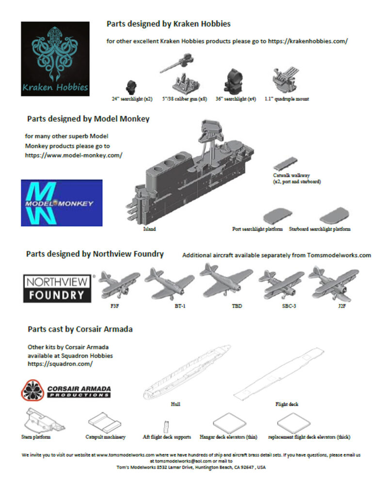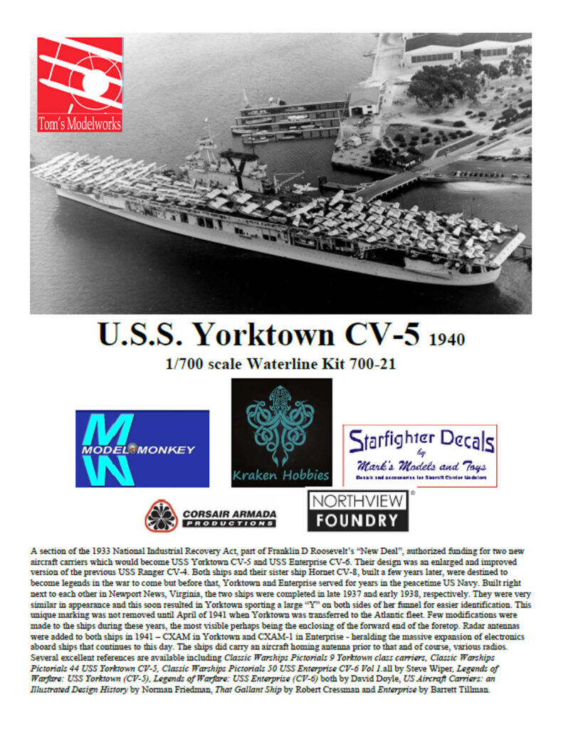 Tom’s Model Works, USS Yorktown CV-5, 1940. 1/700 Scale